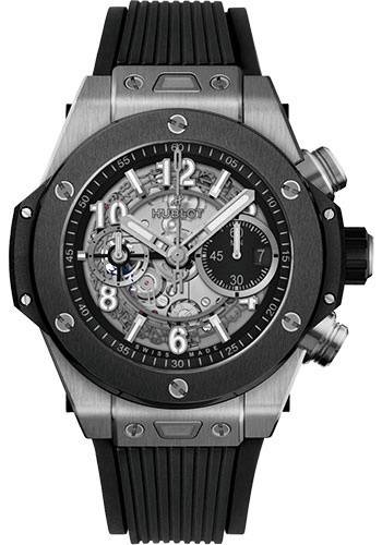 44 mm satin-finished and polished titanium case, satin-finished and polished black ceramic bezel with 6 h-shaped titanium screws