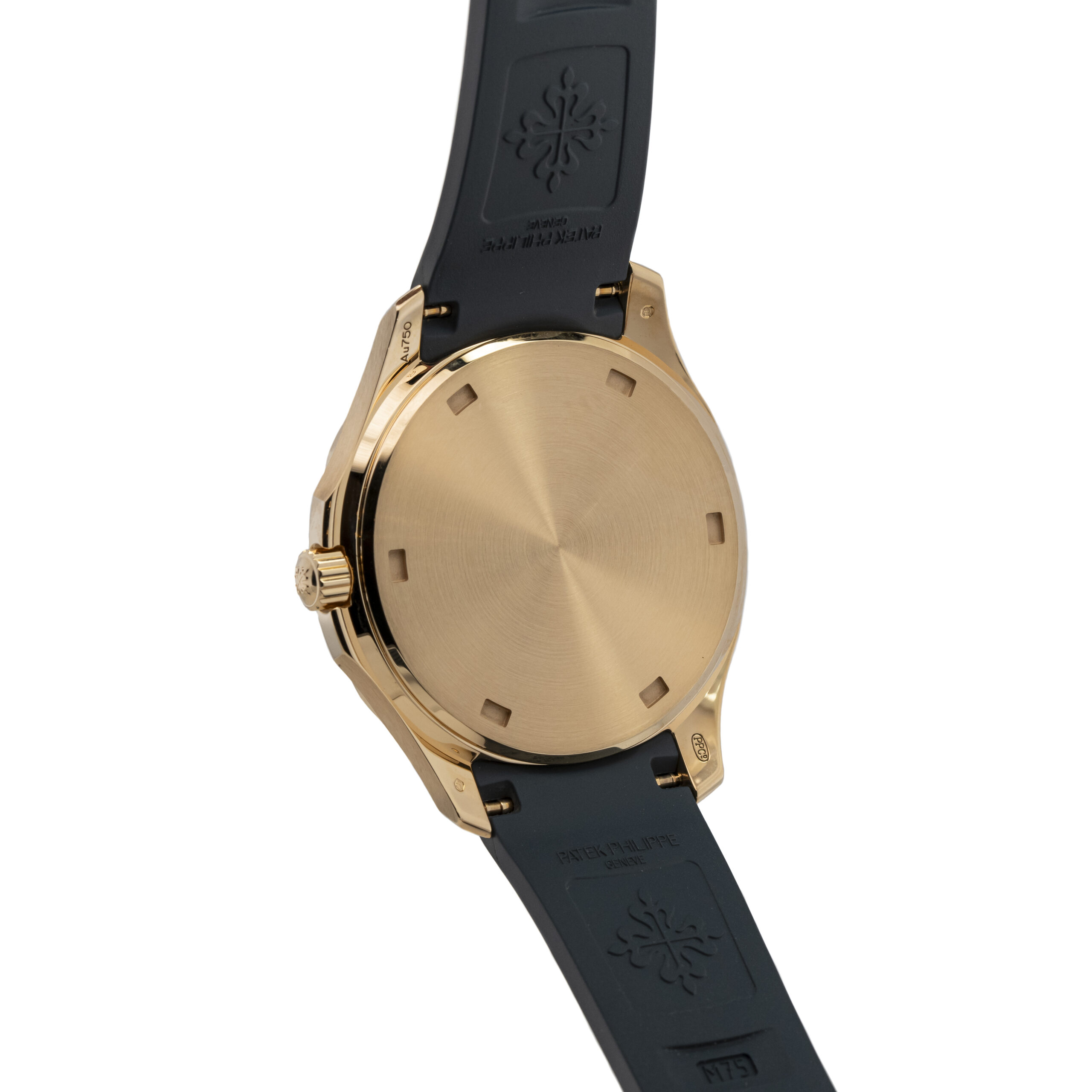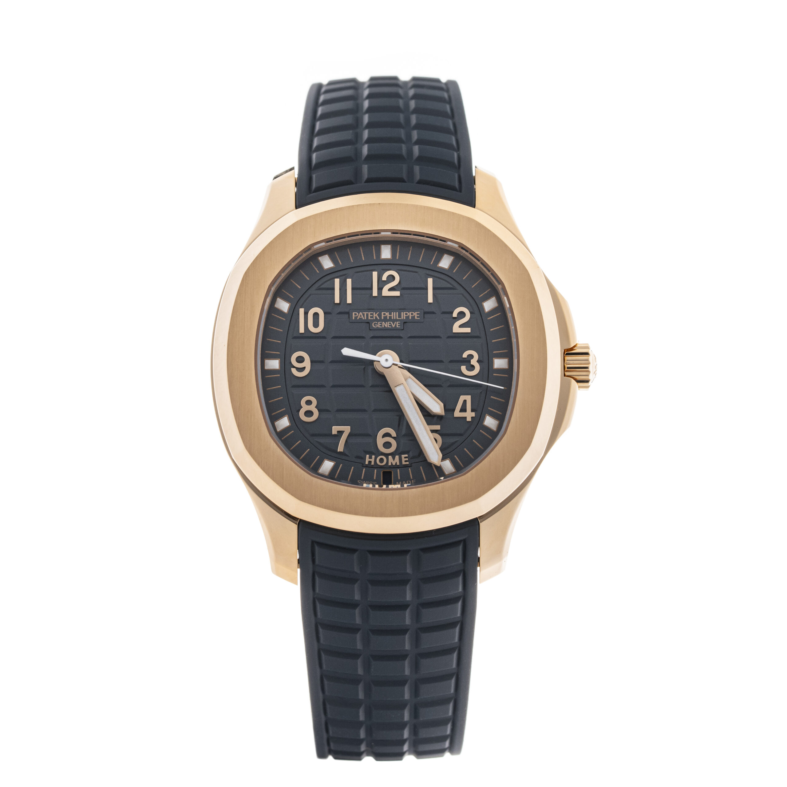38.8 mm, rose gold with blue-grey rubber strap, quartz caliber E 23-250 S FUS 24H with second time zone and day/night displa