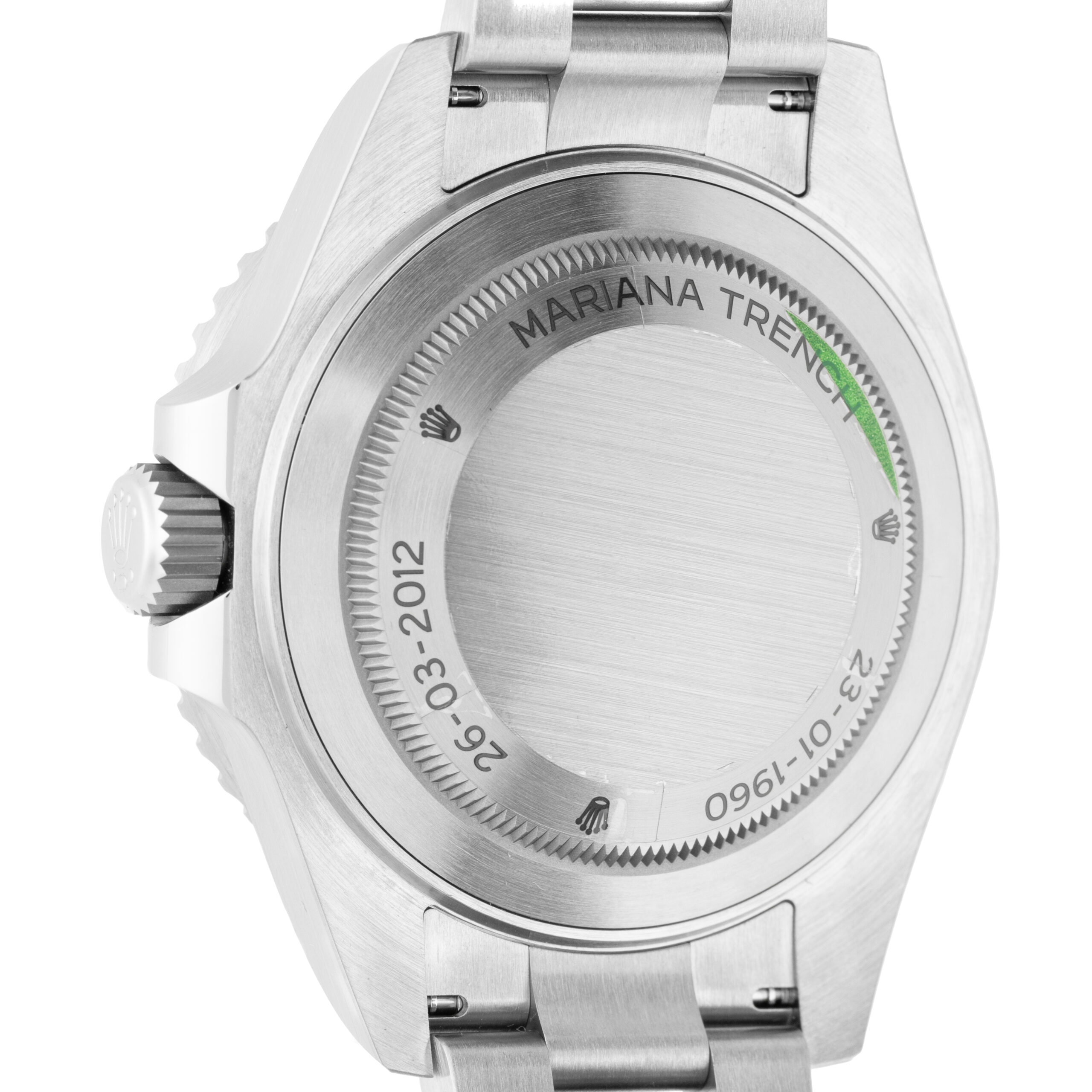 Grey titanium case with a grey titanium oyster bracelet. Uni-directional rotating black ceramic bezel. Black dial with silver-tone hands and index hour markers. Minute markers around the outer rim. Dial Type: Analog. Luminescent hands and markers. Rolex Calibre 3230 Automatic movement, containing 31 Jewels, bitting at 28800 vph, and has a power reserve of approximately 70 hours.