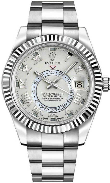 Ivory dial Roman w/ date, month, GMT, second time zone, hour minute and second hand, “saros” annual calendar