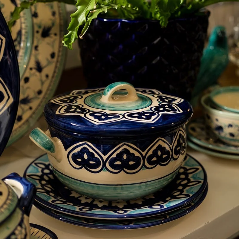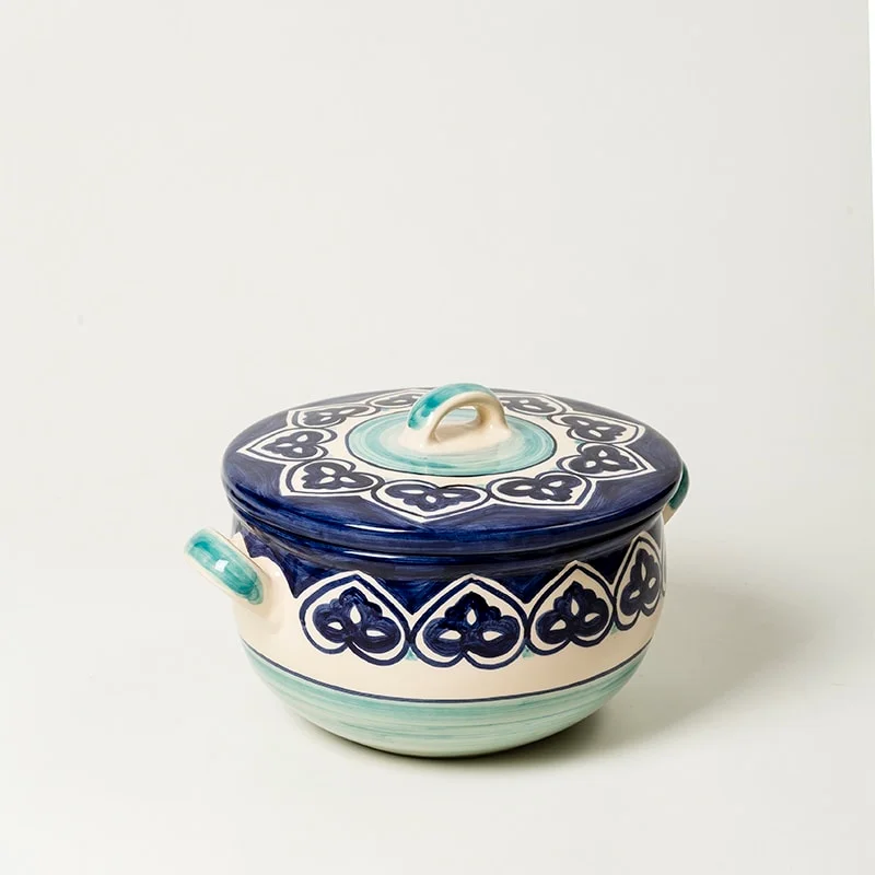 Terrina em cerâmica com estampa inspirada na Costa Amalfitana, praticidade para seus caldos e sopas, e o que mais sua imaginação mandar.